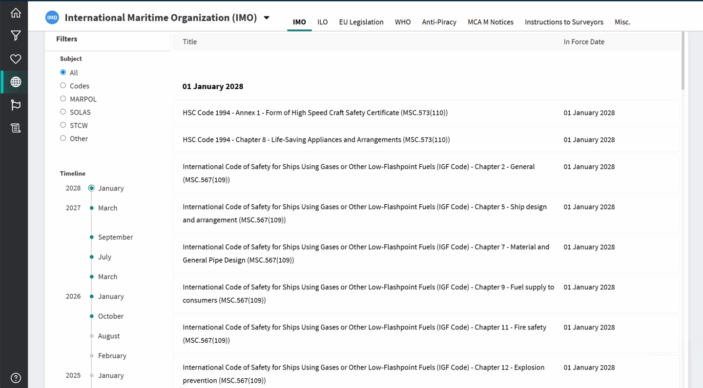 Regs4ships updates as regulations change, so you’re never left working with outdated information. With full histories and a 12-month timeline of future amendments, Regs4ships gives you certainty today and clarity for tomorrow.