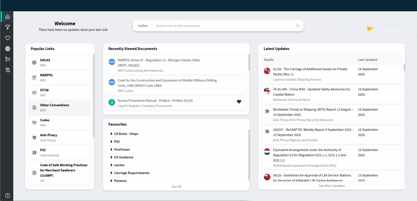 Wouldn’t it be easier if every regulatory publication you needed – from the IMO, ILO, to flag states – lived in one place? If guidance, codes, and circulars were always the latest version, ready when you need them, for every vessel in your fleet?